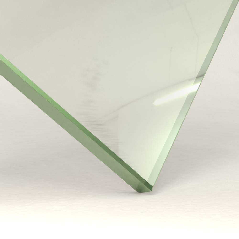 Jernfattigt glas, her har man fjernet minimum 90% af den naturlig grønlige farve der er i glas. Hvis du vil have eks helt hvidt glas, skal du vælge dette glas. Kanten på jernfattigt glas, er en smule lysegrøn, det er fordi man ser på langs igennem glasset og den lille rest af grønlige nu kan ses. Bemærk at hvis du har skarpt lys på kanten af glasset, reflekteres lyset i kanten og kan lave reflekser ind på glasfladen.