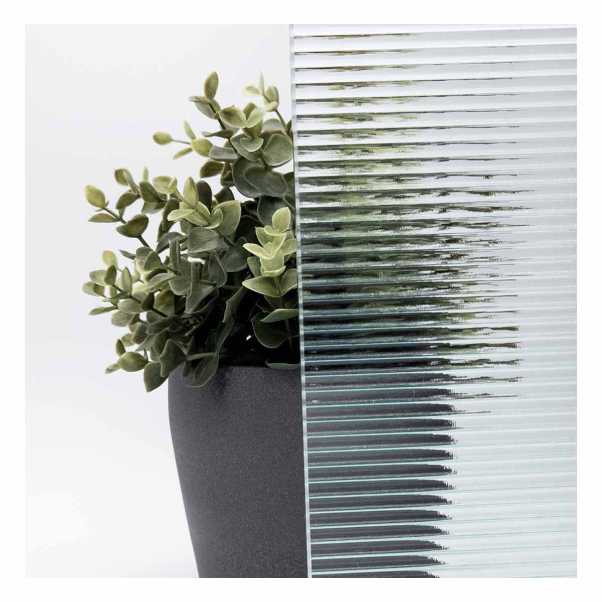 8 mm hærdet VISIOSUN glas med vandret mønster og poleret kant.