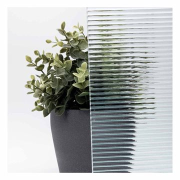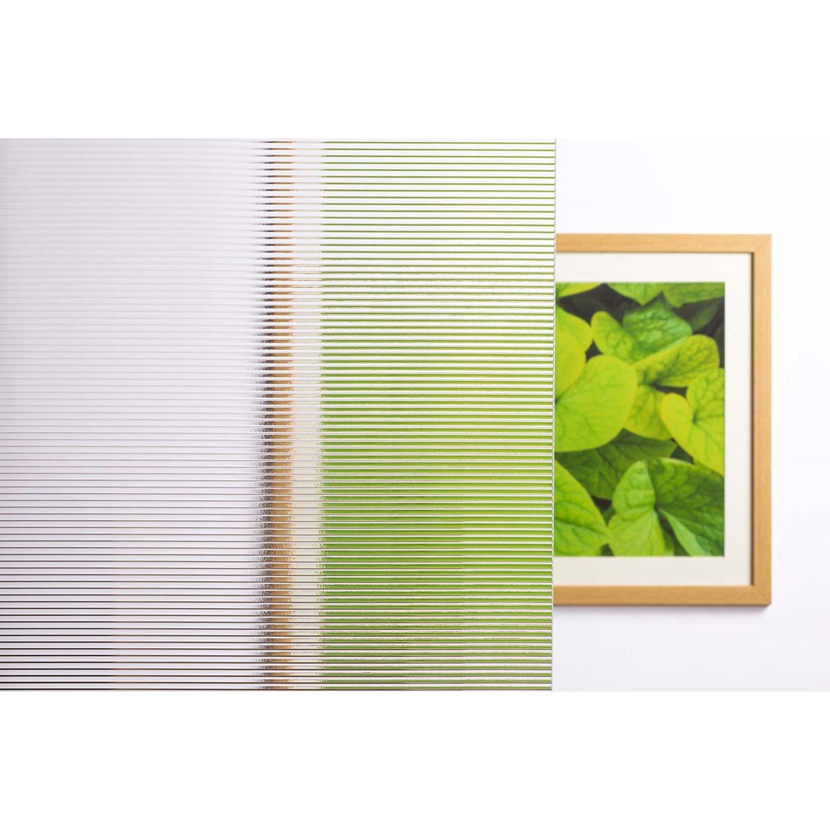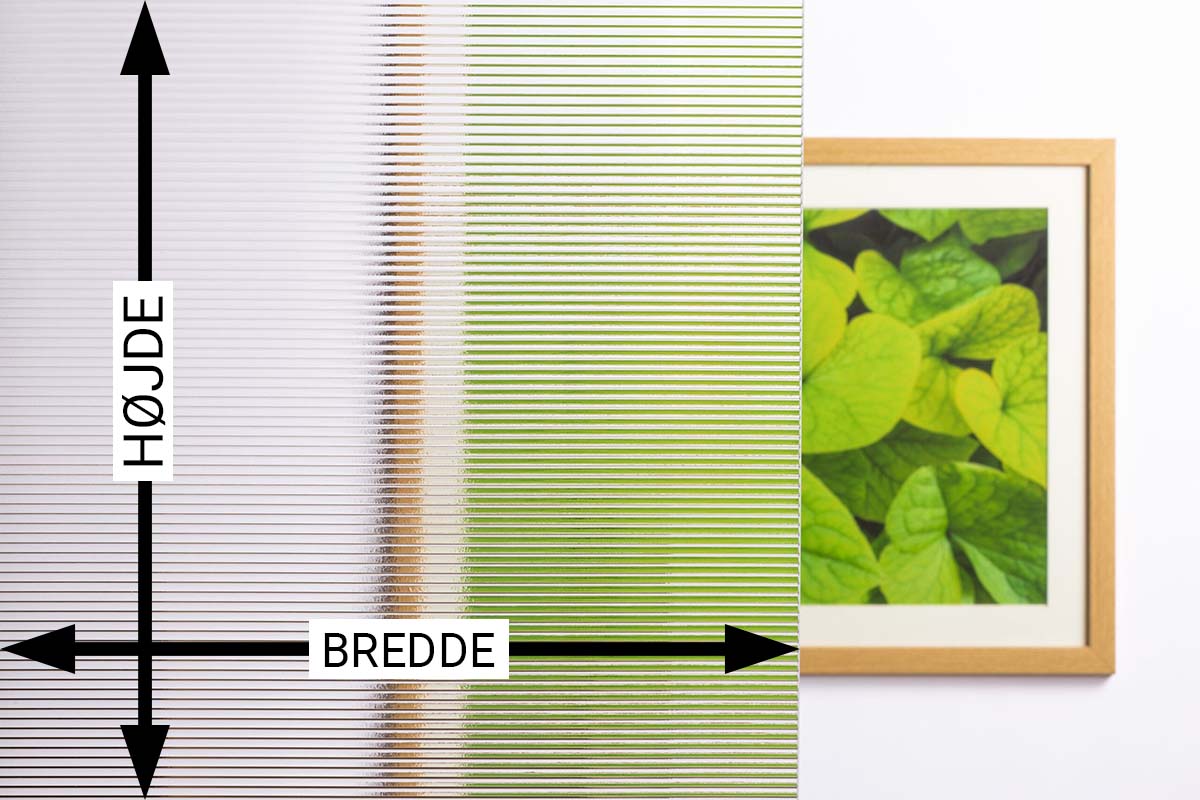 Glassets vandrette linjer diffuser, når man ser på det, men tillader gennemtrængning af naturligt lys ind. Se billeder ovenfor.