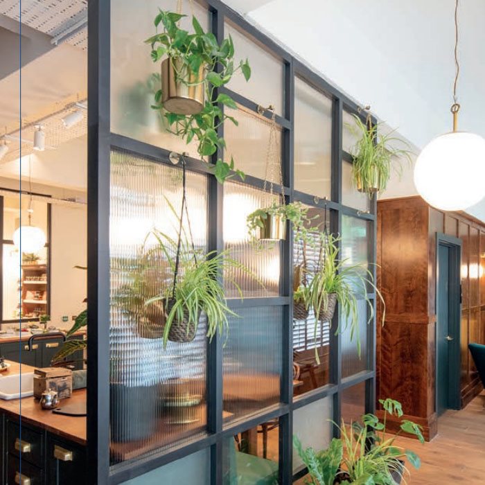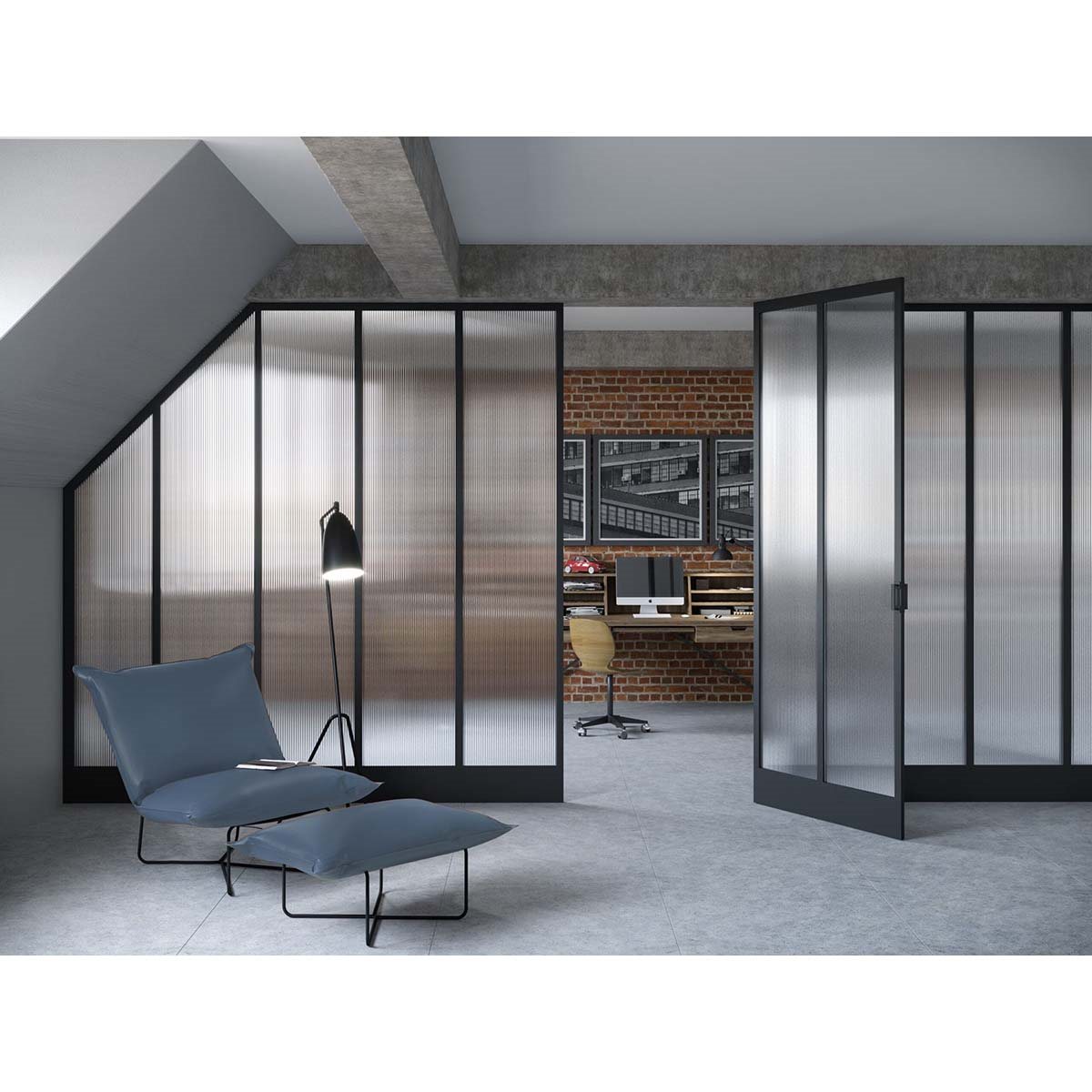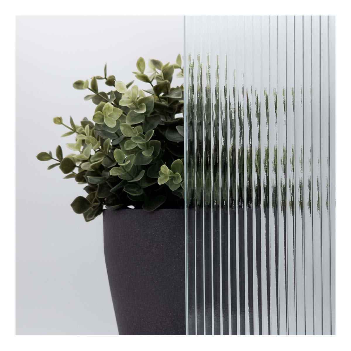 Glassets lodrette linjer diffuser, når man ser på det, men tillader gennemtrængning af naturligt lys ind. Se billeder ovenfor.