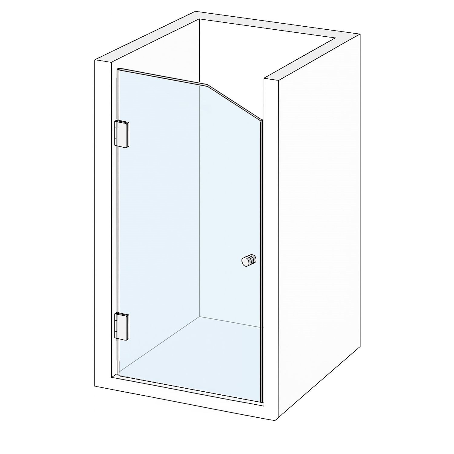 Denne brusedør efter mål leveres med justerbare IG Classic hængsler samt et greb efter eget valg.