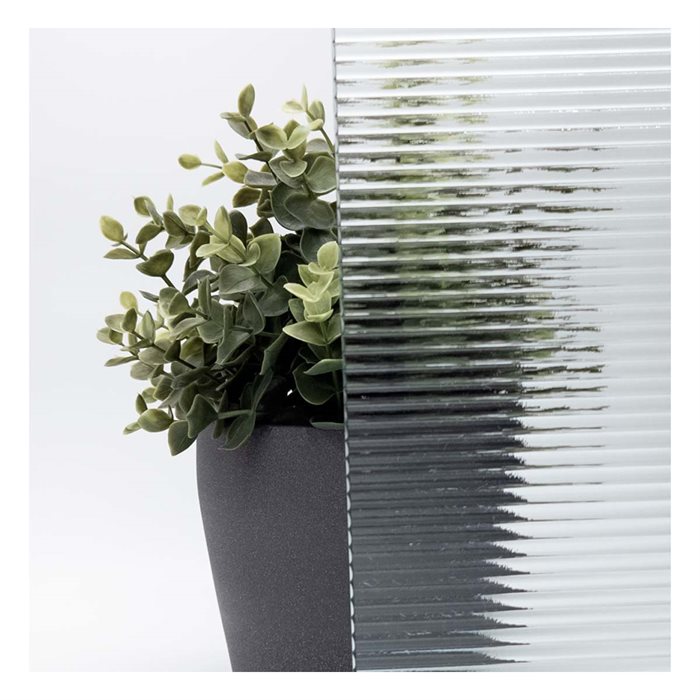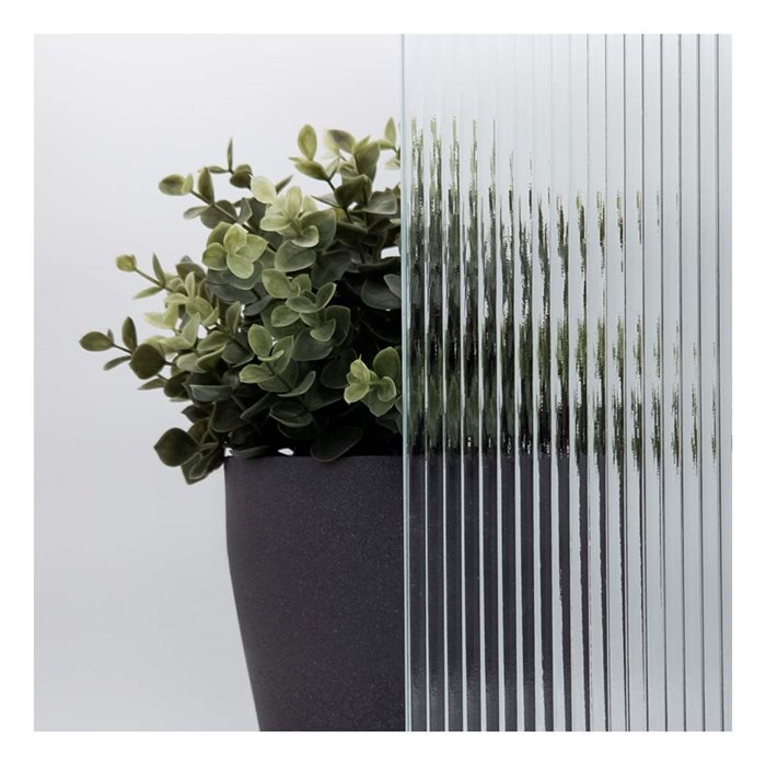 Glassets lodrette linjer diffuser, når man ser på det. Det giver privatliv og et flot dekorativt udtryk, men tillader samtidig lysets gennemtrængning.
