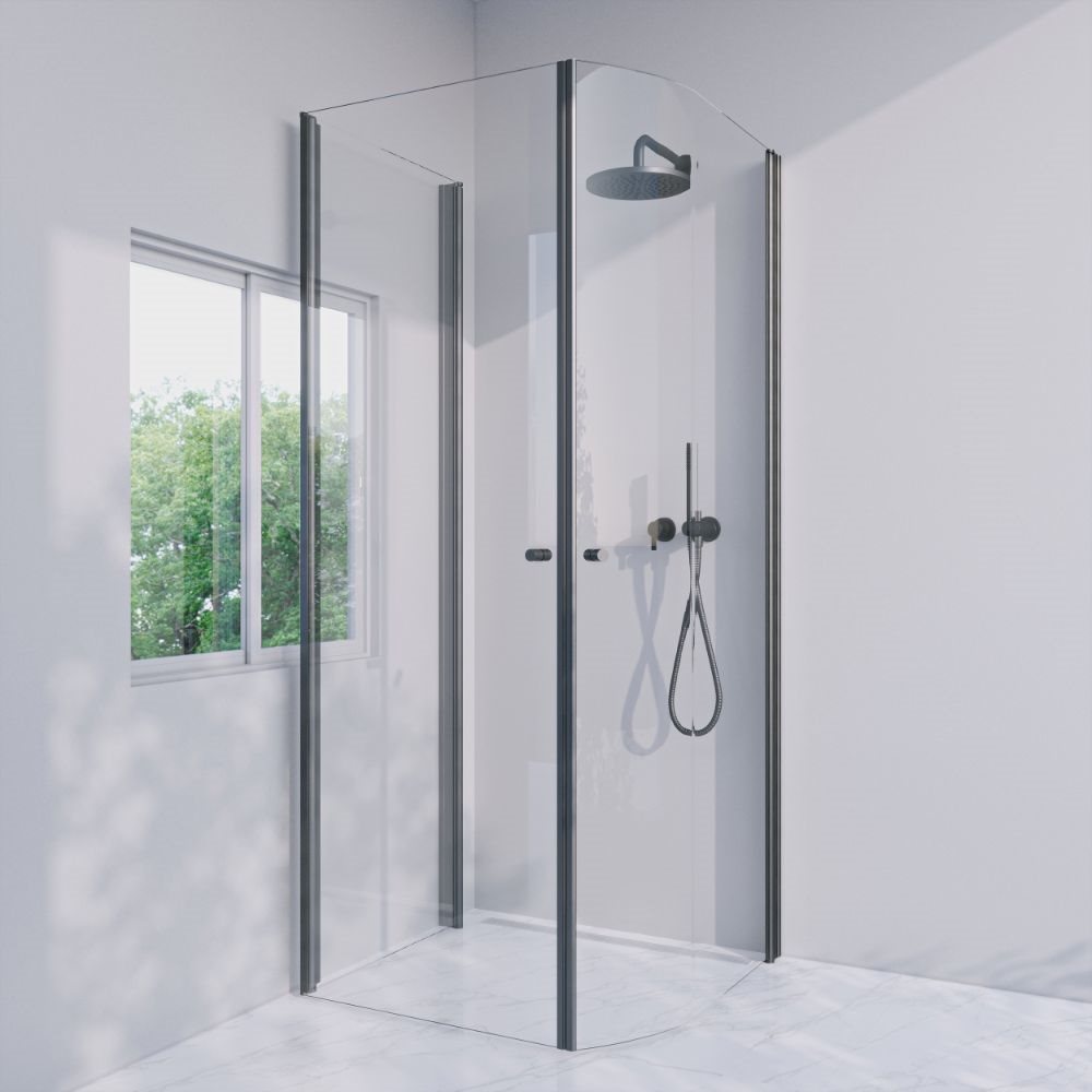 Ljusterö består af en dobbelt foldedør og en dør i buet glas. Dørbladene er monteret med vedligeholdelsesfrie løftehængsler, så dørene bliver løftet 5 mm, når de åbnes. Glasset er monteret i slanke aluminium vægprofiler. Aluminiumsprofilerne er af høj kvalitet og de kommer med ekstra borehuller, så de kan sidde ekstra godt fast i væggen, og skabe en stabilitet i brusekabinen der holder hele brusekabinens levetid. Glasset i brusekabinen er 6 mm klart hærdet sikkerhedsglas.