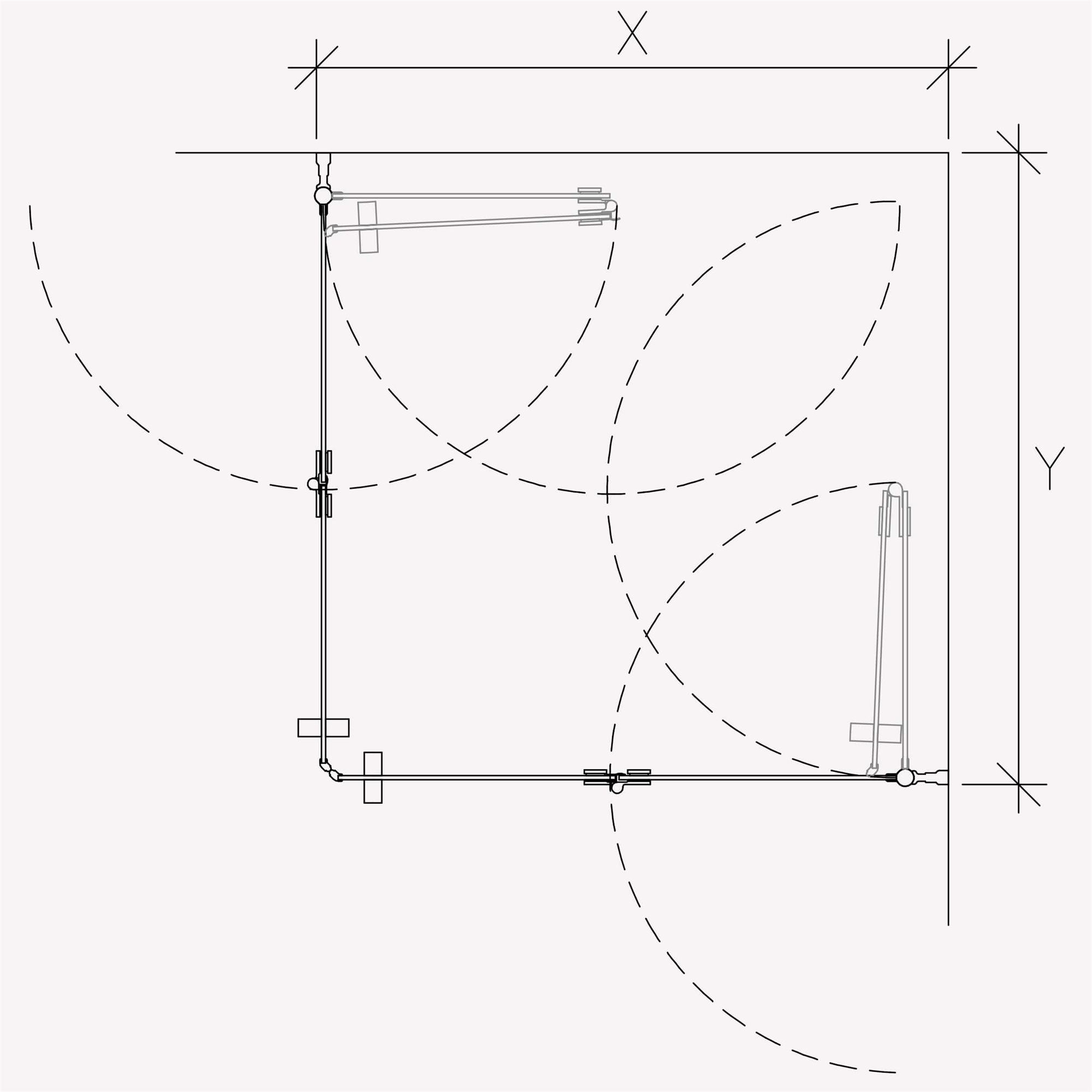 Brusehjørne fra Prime-serien består af to lige foldedøre og tager minimal plads. Dørbladene er monteret med vedligeholdelsesfrie løftehængsler, så dørene bliver løftet 5 mm, når de åbnes. Glasset er monteret i slanke aluminium vægprofiler. Aluminiumsprofilerne er af høj kvalitet og de kommer med ekstra borehuller, så de kan sidde ekstra godt fast i væggen, og skabe en stabilitet i brusekabinen der holder hele brusekabinens levetid. Glasset i brusekabinen er 6 mm klart hærdet sikkerhedsglas.