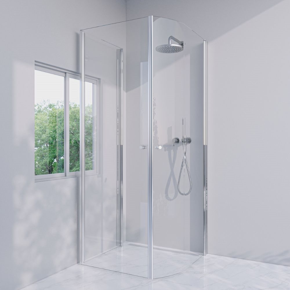 Ljusterö består af en dobbelt foldedør og en dør i buet glas. Dørbladene er monteret med vedligeholdelsesfrie løftehængsler, så dørene bliver løftet 5 mm, når de åbnes. Glasset er monteret i slanke aluminium vægprofiler. Aluminiumsprofilerne er af høj kvalitet og de kommer med ekstra borehuller, så de kan sidde ekstra godt fast i væggen, og skabe en stabilitet i brusekabinen der holder hele brusekabinens levetid. Glasset i brusekabinen er 6 mm klart hærdet sikkerhedsglas.