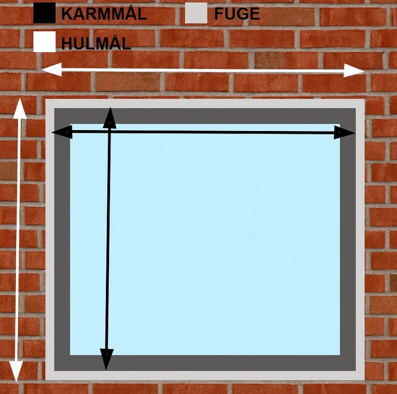 - Når du skal udregne karmmålet, skal du trække 20-30 mm fra hulmålet i højden og bredden.