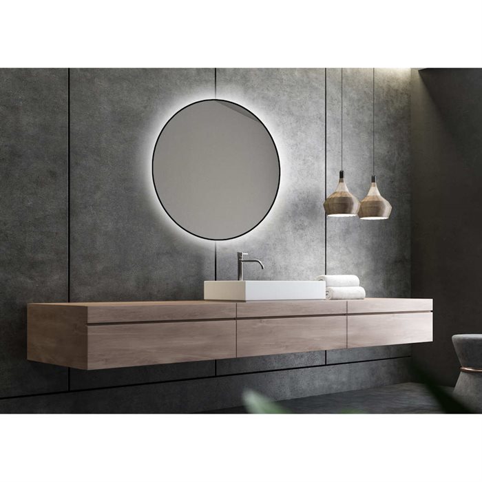Olivia 1 - Ø 80 cm - Rund LED spejl - Sort ramme