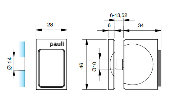 Kan vendes til 6-13,52 mm tykt glas. Grebet sidder på den ene side af glasset.