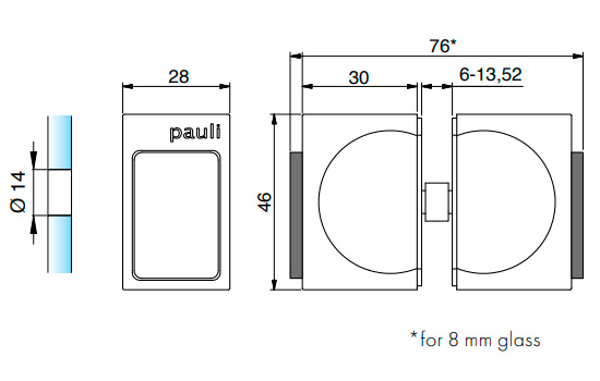 Kan vendes til 6-13,52 mm tykt glas. Grebet sidder på begge sider af glasset.